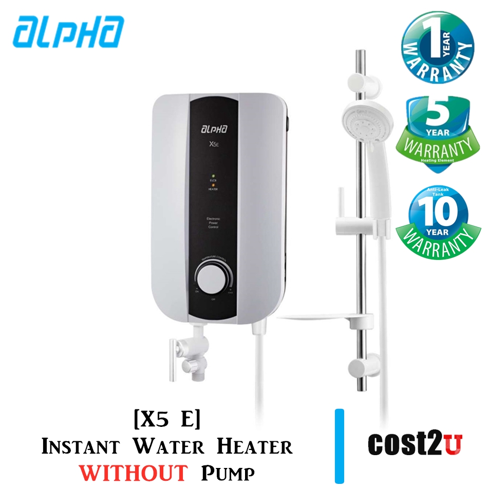 Alpha x5e water heater. Among the most popular alpha water heaters models today are alpha 18i alpha as 2ep and alpha x5e. The alpha x5e is now available in malaysia. We are an iso 90012015 quality management system certified manufacturer of instant electric water heater storage water heater shower pump shower panels and shower accessories..