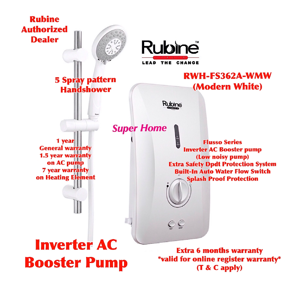 Rubine Water Heater Rwh Sse862a Wmw Ac Booster Inverter White