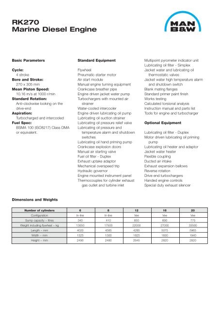Rk270 Marine Diesel Engine Man Diesel Turbo